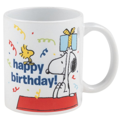 Taza de cerámica de alta calidad United Peanuts: Happy Birthday. Esta taza de hermoso diseño se convertirá rápidamente en la favorita de todos los fans del beagle filosófico. Ideal para un regalo, compatible con microondas y lavavajillas. 320ml.