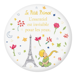 3,95 € Dispo sur commandeMagnet rond décoratif Le Petit Prince, la Tour Eiffel et des fleurs. 55mm.