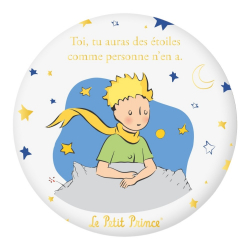 3,95 € Dispo sur commandeMagnet rond décoratif Le Petit Prince montrant les étoiles. 55mm.