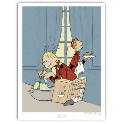 149,00 € Dispo sur commandeCette estampe d'art dérivée de la bande dessinée Gaston Lagaffe, Franquin est imprimée par encres pigmentaires, résistent à l’eau et aux UV, sur papier Fine Art paper 315gr/m2, 100% coton marque Innova ref IFA22. Edition limitée à 149 exemplaires avec certificat d'authenticité. Étude de couverture: Gaston, Lagaffe nous gâte. Dimensions: 43x60cm.