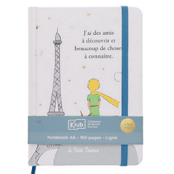 6,95 € En stockCarnet de notes Kiub Le Petit Prince sur sa planète avec avec sa valise, renard et Tour Eiffel. Couverture rigide et ligné. 160 pages. Dimensions 10,5x15cm.
