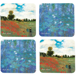 Set de 4 sous-verres Enesco Claude Monet, Coquelicots et Nymphéas (10x10cm)