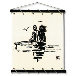 269,95 € Dispo sur commandePoster en toile tendue coton Corto Maltese, Plage. Comprend une cordelette pour pouvoir l'accrocher au mur. Montage en bois peint, la corde est de couleur chanvre. Livré dans un sac de toile reprenant le visuel du panneau. Fabriqué artisanalement en France. Dimensions 145x65cm.