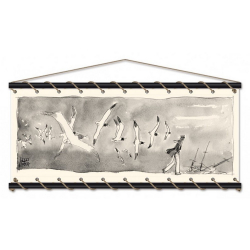 289,95 € Dispo sur commandePoster en toile tendue coton Corto Maltese, Promenade. Comprend une cordelette pour pouvoir l'accrocher au mur. Montage en bois peint, la corde est de couleur chanvre. Livré dans un sac de toile reprenant le visuel du panneau. Fabriqué artisanalement en France. Dimensions 145x70cm.