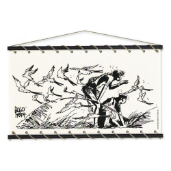 119,95 € Dispo sur commandePoster en toile tendue coton Corto Maltese, Riachuelo. Comprend une cordelette pour pouvoir l'accrocher au mur. Montage en bois peint, la corde est de couleur chanvre. Livré dans un sac de toile reprenant le visuel du panneau. Fabriqué artisanalement en France. Dimensions 40x45cm.