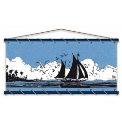 289,95 € Dispo sur commandePoster en toile tendue coton Corto Maltese, Voilier. Comprend une cordelette pour pouvoir l'accrocher au mur. Montage en bois peint, la corde est de couleur chanvre. Livré dans un sac de toile reprenant le visuel du panneau. Fabriqué artisanalement en France. Dimensions 150x75cm.