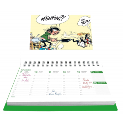 Agenda calendrier 2026 Gaston Lagaffe. Cet agenda-calendrier 2026 vous permettra d'inscrire vos rendez-vous, prendre des notes, consulter la fête du jour ou les jours fériés tout en admirant la photo de la semaine. D'un simple geste, il se replie et se glisse dans votre sac ou votre cartable pour vous suivre dans vos rendez-vous. Dimensions: 24,2x17,7cm. Français. 108 pages.