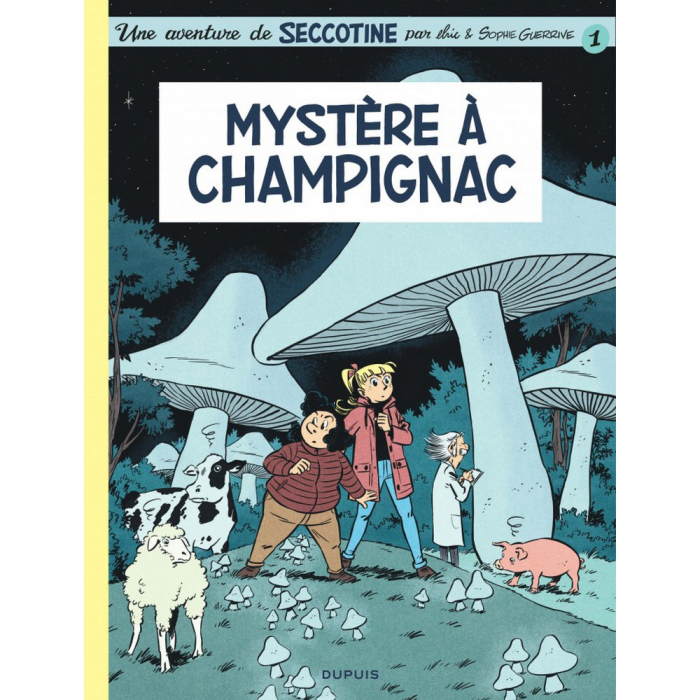 Elle est journaliste, intrépide, piquante... et a besoin d'une petite pause : c'est Seccotine ! Loin des aventures de Spirou et Fantasio, elle décide de ralentir et de se mettre au vert. Champignac-en-Cambrousse s'impose alors comme le refuge idéal : campagne paisible, habitudes rassurantes, silences réparateurs. Mais à peine installée, la journaliste se retrouve entraînée dans une affaire de disparitions d'animaux. Entre les écologistes équivoques d'Arthur Nature et les chasseurs du GSC, le Groupement pour la sécurité de Champignac, le village révèle ses zones d'ombre... Derrière les façades tranquilles, l'intrigue s'inscrit dans la grande tradition du cosy mystery anglais, où le mystère se glisse dans un décor bucolique et faussement innocent...