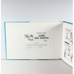 Tirage de luxe de l'album Gaston Nº1: Gare aux gaffes. Album numéroté livré avec 3 fac-simile d’un bleu de coloriage de planche avec son cello + 1 plv de Gaston. Album très grand format à l'italienne, 33x23cm. Dos toilé. Edition limitée et numérotée à 495 exemplaires.