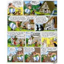 De retour de la chasse et après avoir consommé de la potion magique, Astérix et Obélix découvrent que tous les villageois sont figés, à l’exception de Panoramix qui a bu lui aussi de la potion magique. 48 pages. Français.