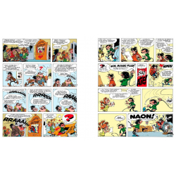 Gaston, c'est un des personnages les plus sympathiques de toute la bande dessinée franco-belge. Né il y a 66 ans sous le crayon d'André Franquin, Gaston est au début un antihéros paresseux qui très vite va devenir un personnage à l'imagination et à l'énergie débordantes (tant qu'il ne s'agit pas de travailler). La série comporte une galerie de personnages réjouissante : Moizelle Jeanne, l'amoureuse transie de Gaston (qui ne capte aucun des signaux qu'elle envoie) ; M. De Mesmaecker, l'homme d'affaires irascible qui n'arrive jamais à signer des contrats ; Prunelle, le patron stressé de Gaston, victime favorite de ses inventions, etc. Gaston est sans conteste la série la plus drôle de l'histoire de la bande dessinée franco-belge, servie par un graphisme expressif et ultra dynamique.