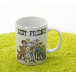 Mug en porcelaine de qualité de la marque allemande Könitz Lucky Luke. Idéal pour un cadeau, compatible avec micro-ondes et lave-vaisselle. Le petit-déjeuner sera beaucoup plus amusant si vous êtes un fan des légendaires BD de Lucky Luke. Je bois mon café plus vite que mon ombre. 300ml.