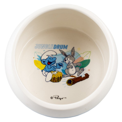 Cette mangeoire pour lapins et rongeurs avec le Schtroumpf Musicien et un lapin est fabriquée en céramique. Ce modèle à rebord incliné assure une accessibilité optimale aux aliments ou boissons et évite les éclaboussures excessives. Grâce à la finition émaillée de haute qualité, la mangeoire est étanche pour boire et est très facile à nettoyer. Dimensions: 15x15x10cm. 800ml.