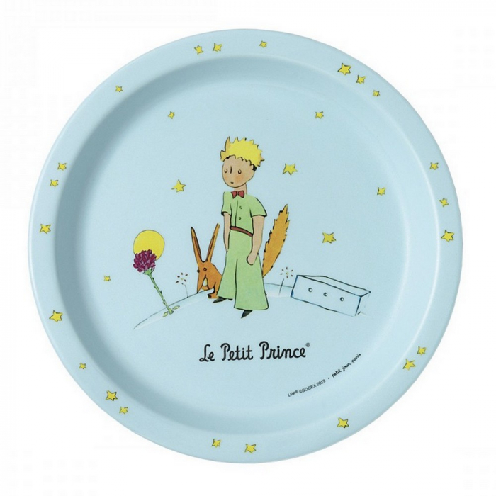 Assiette bebé Petit Jour, Le Petit Prince et le Renard. Proportion idéale pour des petits enfants. Elle dispose d'un rebord ergonomique pour aider l’enfant à prendre les aliments et manger presque tout seul. Lavable en machine. Ne pas utiliser au micro-ondes, ni au congélateur. Matière: mélanine. Diamètre: Ø18cm.