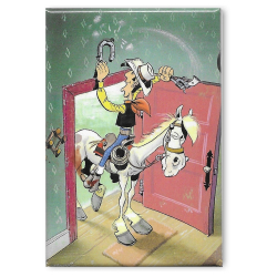 Cet aimant décoratif représente Tintin en train de lire son journal avec Milou. Diamètre: 55mm.