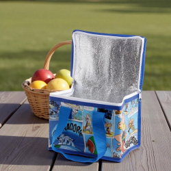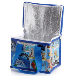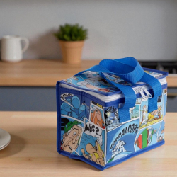 Sac isotherme repas en plastique recyclé de collection Astérix et Obélix: Bande Dessinée. L'intérieur est en aluminium tandis que l'extérieur est en plastique recyclé. Ainsi, il gardera les aliments au froid ou au chaud. Il dispose d'une fermeture éclair et d'une poignée en tissu pour un transport facile. Dimensions: 20x13x16cm.