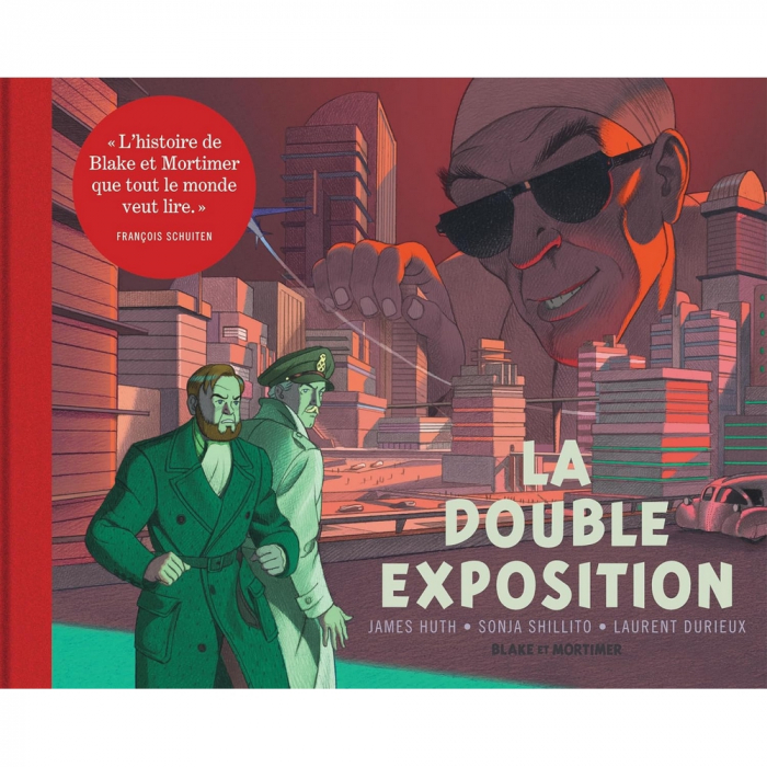 Les canons à neutrons du Télétransporteur les ont tous miniaturisés ! Et voilà nos deux héros emprisonnés au coeur des maquettes du Futurama. Pourtant, quand Mortimer avait testé cette machine en 1939, il n'avait, semble-t-il, rien ressenti d'autre que quelques maux de tête et vertiges. En tout cas, l'échelle millimétrique n'a en rien entamé la puissance malveillante des génies malfaisants qui ont piégé Blake et Mortimer. Et l'amitié exceptionnelle qui lie ces derniers risque d'être, cette fois-ci, leur plus grande faiblesse... La collection « Le Nouveau Chapitre » accueille avec La Double Exposition les micro-aventures de Blake et Mortimer. « Micro » ? Au sens propre ! Les auteurs Sonja et James Huth, tout droit venus du cinéma, ont le don de jouer avec les mots et les codes de l'univers jacobsien : réunion des légendaires inventions et des « méchants » de la série, recréation de la Marque jaune... Pour illustrer cette expérience psychédélique, une trentaine d'images, sublimes, de Laurent Durieux, dont les couleurs sur Le Dernier Pharaon avaient déjà fait sensation. On prend ici toute la mesure de son talent internationalement reconnu d'affichiste. Difficile de ne pas partager l'opinion de François Schuiten : « L'histoire de Blake et Mortimer que tout le monde veut lire. »