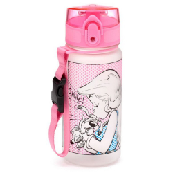 Bouteille d'eau plastique Ecozen avec couvercle à bouton poussoir Astérix et Obélix: Falbala et Idéfix. Le Plastique Renforcé SK Ecozen est un plastique ultra résistant sans bisphénol (BPA et BPS). 350ml.
