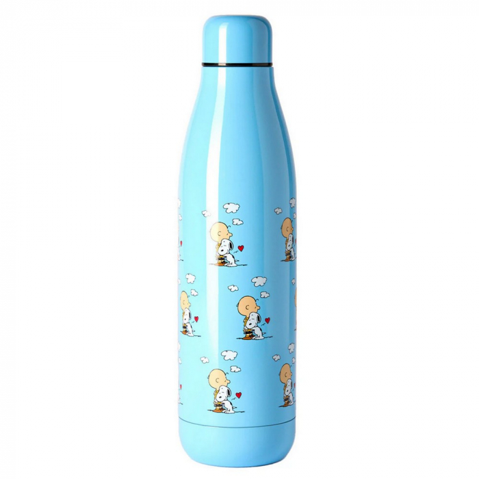 Bouteille isotherme en acier inoxydable Peanuts Snoopy: Câlin à Charlie Brown, de la marque QuyCup. Fabriqué en acier inoxydable 304 à double paroi. Garde les boissons chaudes pendant 12 heures et les boissons froides pendant 24 heures. Fermeture avec joint en silicone (Sans BPA). Ne convient pas au micro-ondes ni au lave-vaisselle. 500ml.
