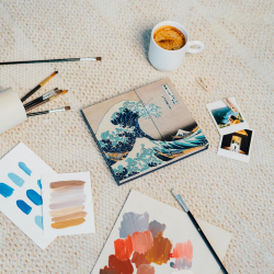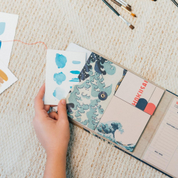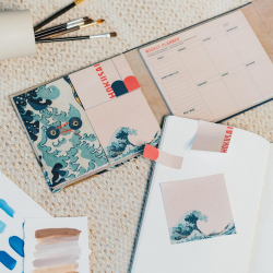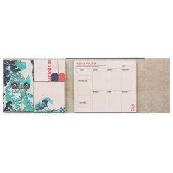 Bloc Planificateur hebdomadaire avec notes adhésives Erik, Katsushika Hokusai: La Grande Vague de Kanagawa. Couverture en carton de 2 mm avec fermeture magnétique. Langue: Anglais.