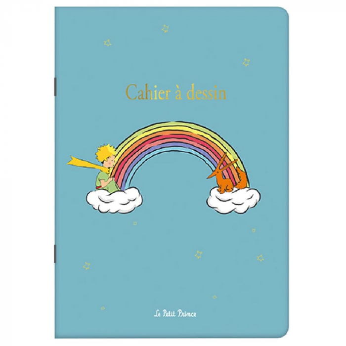 Cahier à dessin / Carnet de notes Kiub Le Petit Prince et l'arc-en-ciel. Couverture souple, 48 pages, papier 120g. Dimensions: 15,5x22cm.