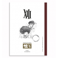 Ce cahier d'art dérivée de la bande dessinée XIII par William Vance et Jean Van Hamme est imprimée sur un papier d'art Fine Art - Blanc naturel / 210g. Chaque exemplaire est ornée d’une plaque en étain Akimoff. Edition limitée à 99 exemplaires. Dimensions: 18x25,3cm. 60 pages. Jones.