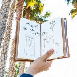 Carnet de notes de voyage Erik, Jurassic Park. Couverture souple en cuir synthétique et bande élastique pour la fermer. Couvertures intérieures avec un design personnalisé. Dimensions: 12x19,5cm.