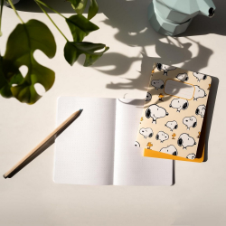 Set de 3 carnets de notes Erik Peanuts Snoopy: Smiles. Les 3 carnets possèdent 32 feuilles de 80g, soit 64 pages. Un carnet est pointillé, l'autre ligné et l'autre avec des pages blanches. Couverture souple, avec trois designs différents. Dimensions: 10,5x14,8cm.