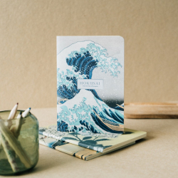 Set de 3 carnets de notes Erik, Katsushika Hokusai. Les 3 carnets possèdent 32 feuilles de 80g, soit 64 pages. Un carnet est pointillé, l'autre ligné et l'autre avec des pages blanches. Couverture souple, avec trois designs différents. Dimensions: 10,5x14,8cm.