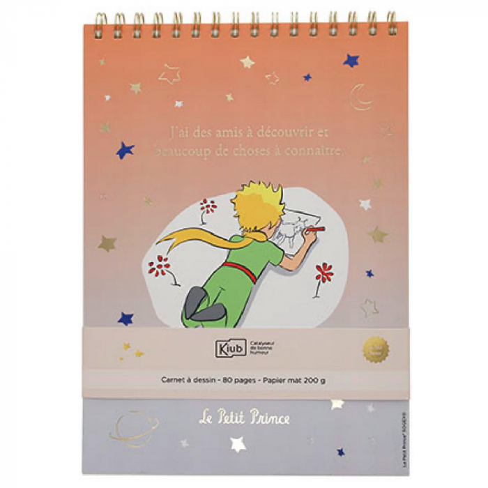 Carnet à dessin Kiub Le Petit Prince dessinant un mouton. 80 pages. Dimensions 14,8x21cm.