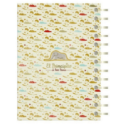 Carnet de notes à spirales Premium Paper, Le Petit Prince en avion. Carnet à couverture rigide avec feuilles de papier bambou. Dimensions: 12x17cm.