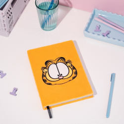 Carnet de notes Erik, Garfield. Présente une couverture recouverte de tissu en peluche et un design brodé, intérieur personnalisé, coins droits, reliure collée, poche et ruban marque-page. Comprend 96 feuilles (192 pages) de 100 g/m2. Dimensions: 19x23,8cm.