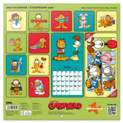 Calendrier mural Erik Garfield 2026. Reliure à agrafes, comprend 12 images à l'intérieur et un petit trou de 5mm pour l'accrocher au mur. Poster incus. Papier 250g. Dimensions: 30x30cm. 6 langues: anglais, espagnol, français, allemand, italien et portugais. 12 mois de janvier 2026 à décembre 2026.