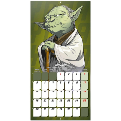 Calendrier mural Erik Star Wars 2026. Reliure à agrafes, comprend 12 images à l'intérieur et un petit trou de 5mm pour l'accrocher au mur. Poster incus. Papier 250g. Dimensions: 30x30cm. 6 langues: anglais, espagnol, français, allemand, italien et portugais. 12 mois de janvier à décembre 2026.