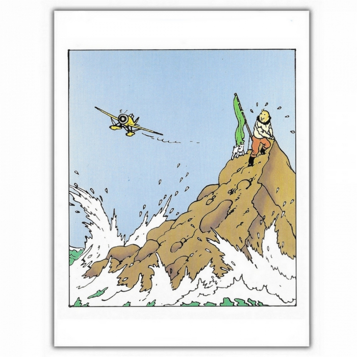 Carte postale double Moulinsart Tintin, sur son îlot. Enveloppe incluse. Dimensions: 12,5x17,5cm.