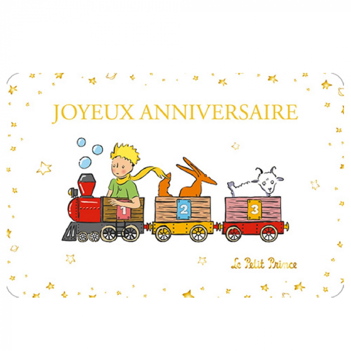 Carte postale de la marque Kiub, Le Petit Prince, Joyeux Anniversaire A. 15x10cm.