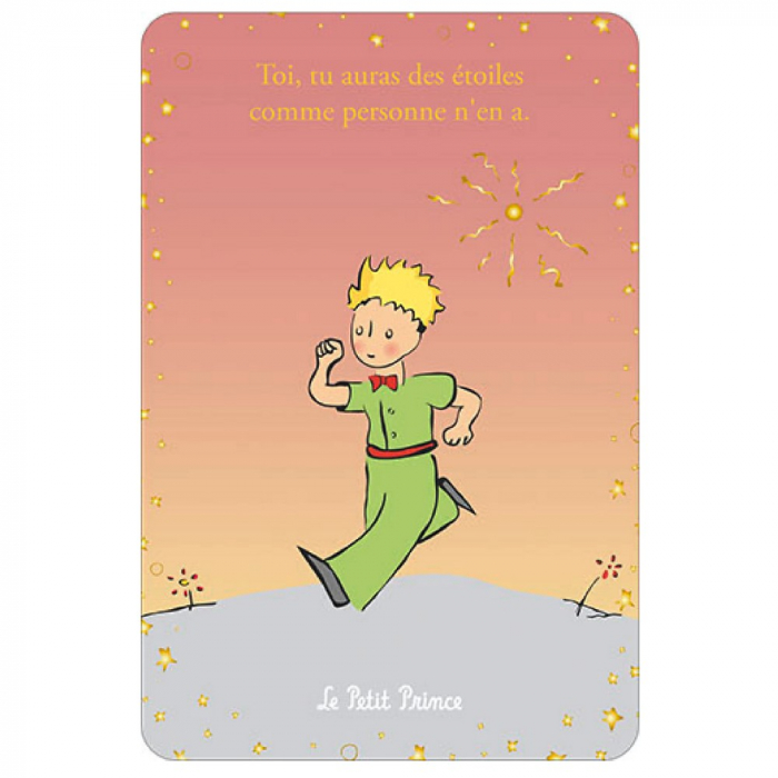 Carte postale de la marque Kiub, Le Petit Prince court sur sa planète. 10x15cm.