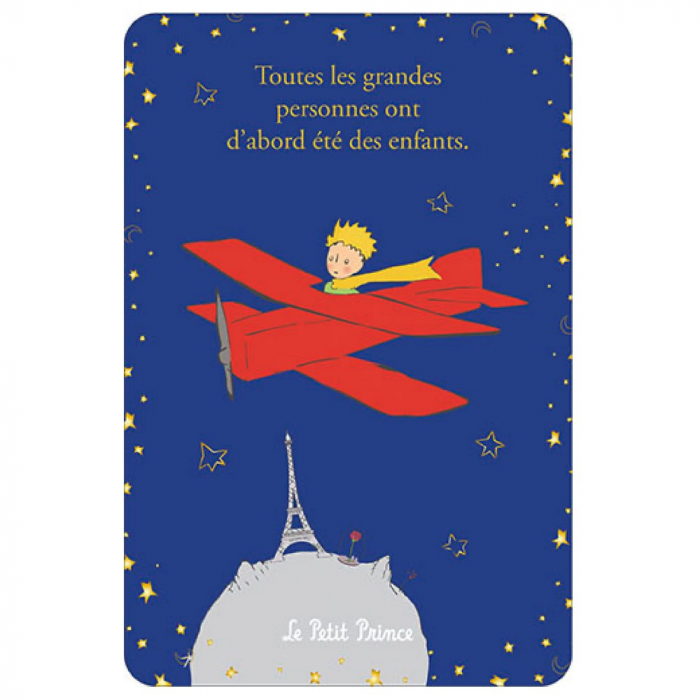 Carte postale de la marque Kiub, Le Petit Prince en avion. 10x15cm.