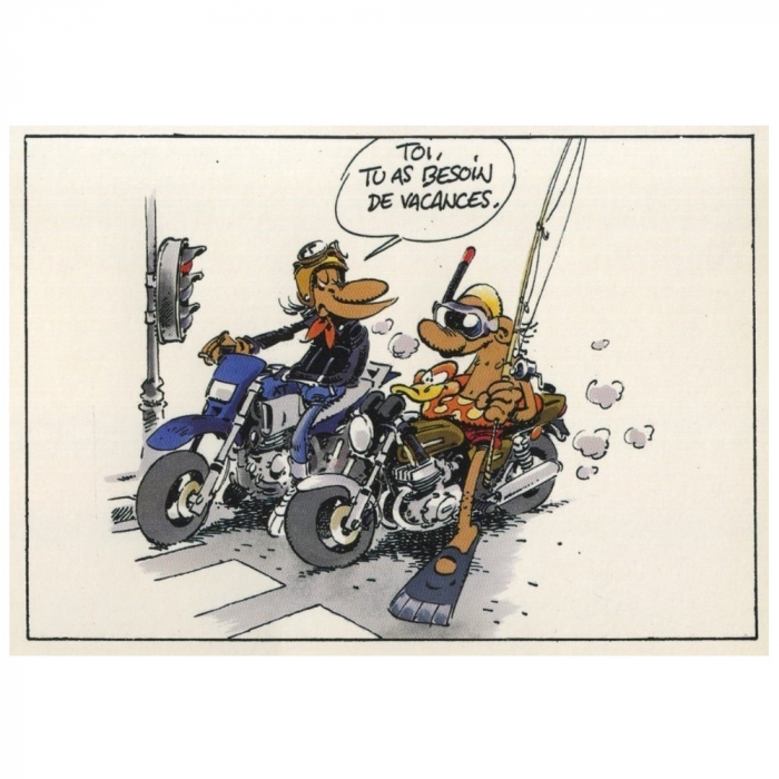 Magnifique carte postale de collection éditée par la société Lucane en 1996, Bar2 Fane Joe Bar Team: Toi, tu as besoin de vacances. Dimensions: 10x15cm.