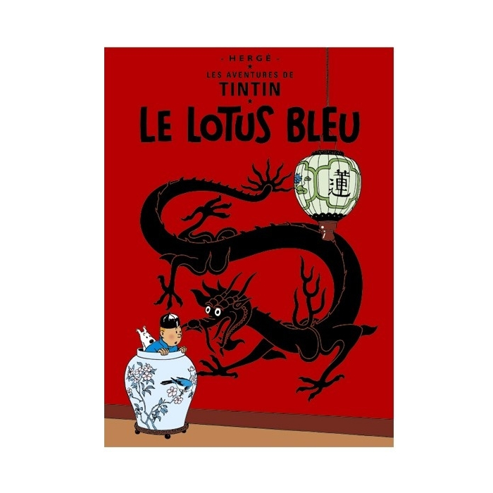 Cette magnifique carte postale représente la couverture de l'album Le lotus bleu.
