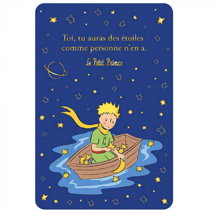 Carte postale de la marque Kiub, Le Petit Prince sur un bateau. 10x15cm.