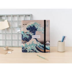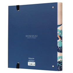 Classeur 4 anneaux Erik, Katsushika Hokusai. Couverture rigide doublée de papier plastifié mat. Intérieur personnalisé selon le design. Dimensions: 28x32cm.