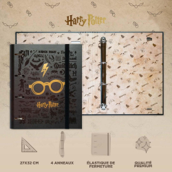 Classeur 4 anneaux Erik, Harry Potter. Couverture rigide doublée de papier plastifié mat. Intérieur personnalisé selon le design. Dimensions: 28x32cm.