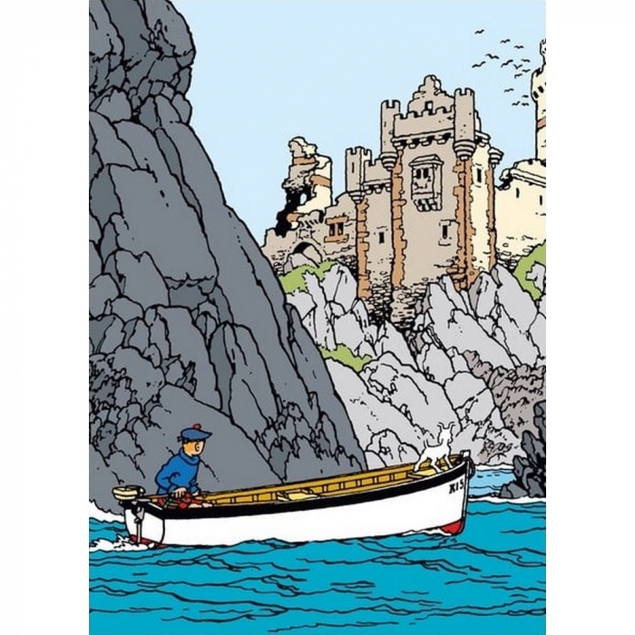 Pochette plastique A4 Les Aventures de Tintin: L'Île Noire, la barque en approche. Un must pour tous les Tintinophiles. Dimensions: 22x30cm.