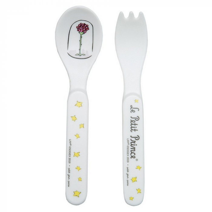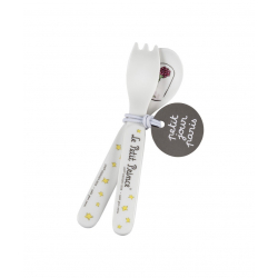 Set de 2 couverts en mélamine Petit Jour Paris, Le Petit Prince: fourchette et cuillère. Un duo adapté aux premières bouchées.