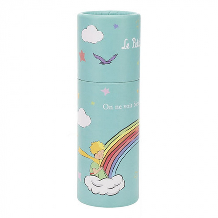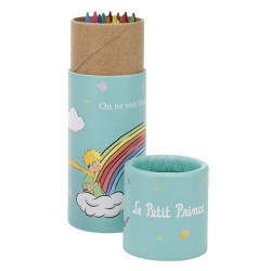 Boîte Tube avec 12 crayons de couleur Le Petit Prince dans l'arc-en-ciel de la marque Kiub. Hauteur: 8cm.
