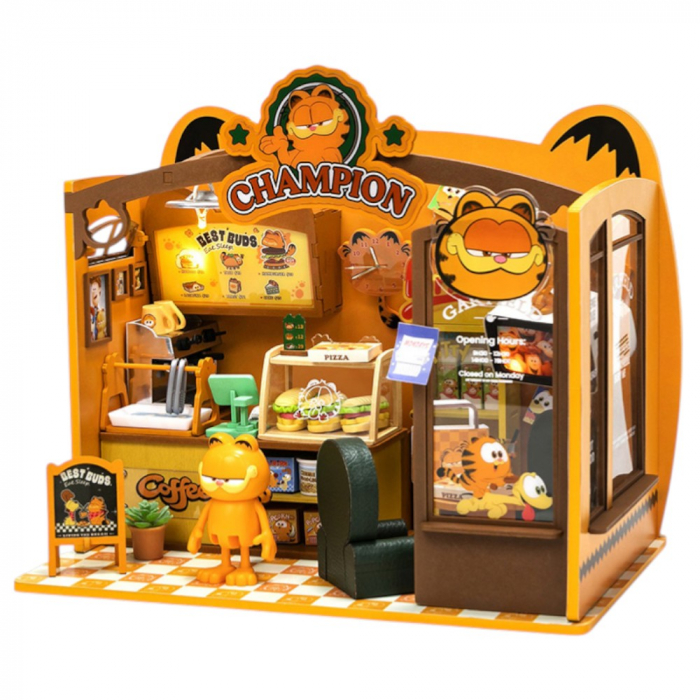 Amateurs de bandes dessinées et de modélisme, laissez-vous séduire par ce superbe kit de construction en bois issu de la collaboration entre Puremind et la licence officielle Garfield. Ce modèle réduit permet de reconstituer le Garfield Café, un lieu emblématique où l'on imagine aisément notre chat orange préféré savourer ses célèbres lasagnes.