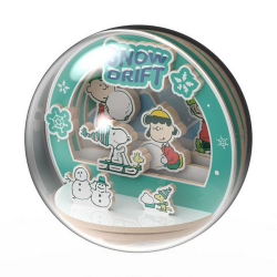 Diorama 3D en bois à assembler Peanuts Snoopy: Snow drift. Inspiré de l'œuvre de Charles M. Schulz et a créé par Pantasy. L'âge minimum recommandé est de 6 ans. Comprend un manuel d'instructions. Diamètre: 8cm.