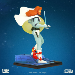 Cette statuette en résine à l’échelle 1:6 rend hommage à ce souvenir précieux : Ulysse y est représenté dans toute sa détermination, prêt à se défendre avec son arme emblématique, qu’il manie aussi bien comme épée laser que comme pistolet. À ses côtés, son fidèle compagnon Nono le petit robot, avec ce mélange d’inquiétude et de tendresse qui a tant contribué à ce qu'il devienne la mascotte de la série.
