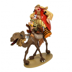 Astérix et Obélix avec Idéfix sur le dromadaire. Figurine de collection en métal Pixi, inspirée du Tome 26 des aventures d'Astérix, L'Odyssée d'Astérix Page 35 Case B1. Entièrement sculptées et peintes à la main, les figurines Pixi sont de véritables pièces de collection. Édition limitée et numérotée à 400 exemplaires avec certificat d'authenticité. Hauteur: 14,8cm.